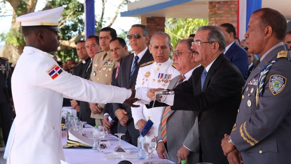 El presidente Danilo Medina encabezó esta mañana, en Hatillo, San Cristóbal, el acto de investidura de la Trigésimo Sexta Graduación Ordinaria de 35 cadetes de la Academia 2 de Marzo de la Policía Nacional.