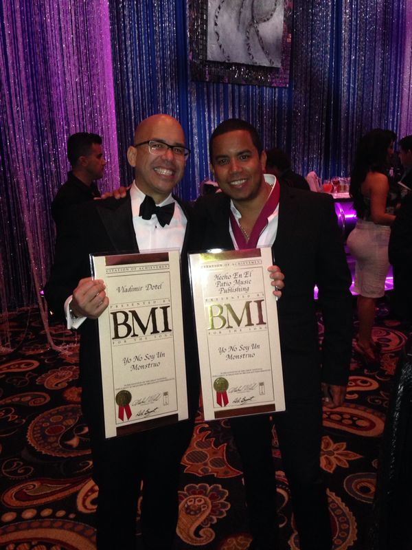 Vladimir Dotel lider del grupo ILEGALES recibe su primer premio de BMI (sociedad gestora del derecho de autor en USA). Por el tema “YO NO SOY UN MONSTRUO” escrita por Vladimir para el merenguero Elvis Crespo cuyo tema ocupo por varias semanas el primer lugar #1 en las listas de Billboard.