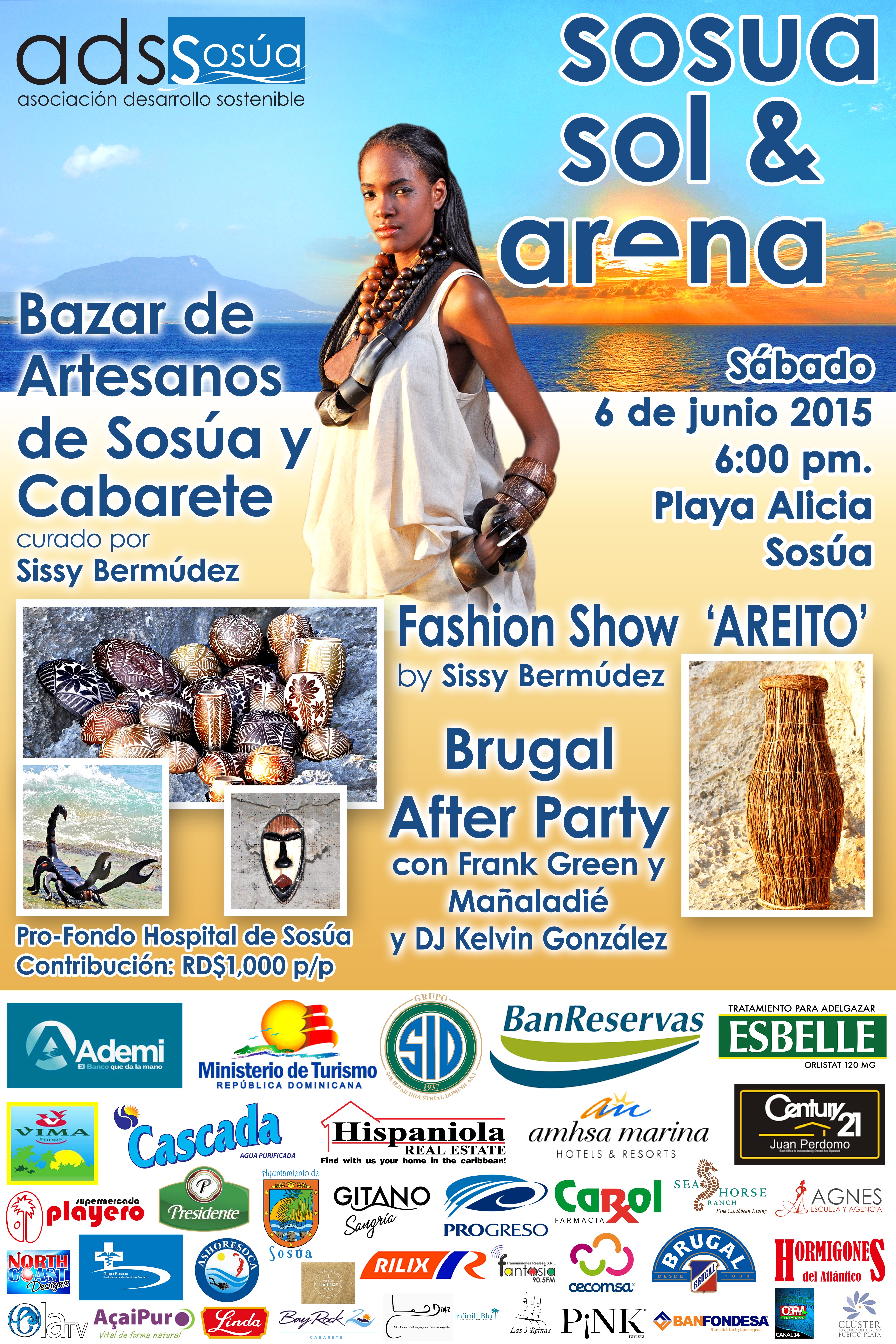 Como parte de la actividad “Sosúa-Sol & Arena”, también se realizará un pase de moda, con el nombre de “Areíto”, donde Sissy Bermúdez presentará sus más recientes creaciones. En el “after party”, el entretenimiento musical estará a cargo de Frank Green y el grupo Mañanaladié, y también el DJ Kelvin González.