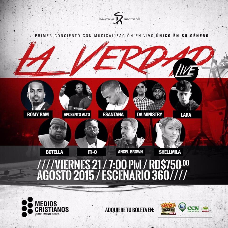 Todo la descarga musical de “La Verdad Live” estará basada en Rap, R&B, Hip Hop, y otros ritmos, los cuales estarán acompañados de elementos visuales, coreografía, luces y efectos especiales. El concierto se realizará en el Escenario de Galería 360 a partir de las 7:00 de la noche, donde desfilaran por la tarima artistas cristianos de la talla de Aposento Alto, Romy Ram, Lara, Botella, Ángel Brown, Da Ministry, Josué El Enviado, Shellmila, Nayrobi Duarte, Iti – O y el anfitrión de la noche F. Santana.