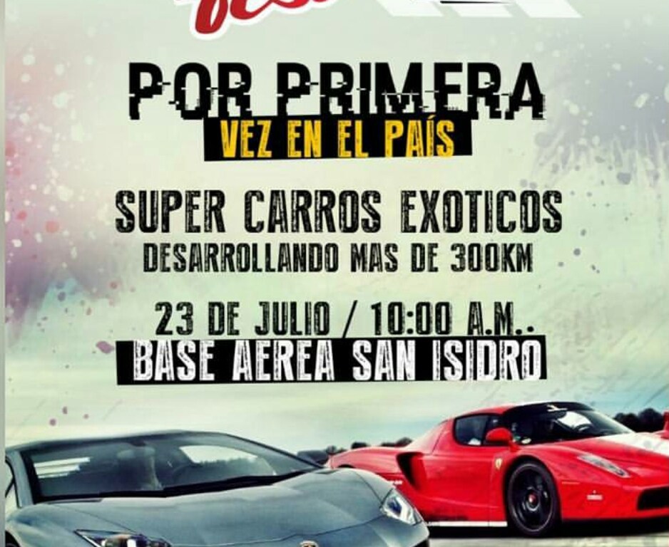 Santo Domingo, República Dominicana.- El domingo 23 de julio llega a la Base Aérea de San Isidro la primera edición del “Speed Show Fest”, con súper autos exóticos, para ser vistos por el público, todos juntos, en un espectáculo de proporciones extraordinarias para la velocidad dominicana que dará inicio a las 10:00 de la mañana.