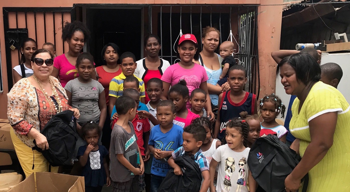 Santo Domingo.- Mirna Pimentel, productora del programa Socializando con Mirna, como cada año, al realizar su acostumbrada entrega de mochilas y material didáctico, ofreció una charla a los niños para reactivar su amor y respeto a nuestros símbolos patrios, habló sobre el comportamiento social para el mejor funcionamiento de nuestra relaciones con los demás.
