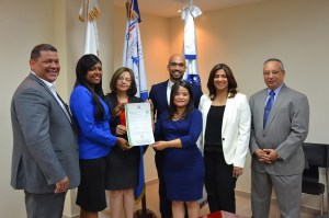 La Normativa fue entregada por la licenciada Glenny Castro, gerente de Estandarización y Normativas de la OPTIC, en representación del ingeniero Armando García, a la directora de Prosoli, doctora Altagracia Suriel.