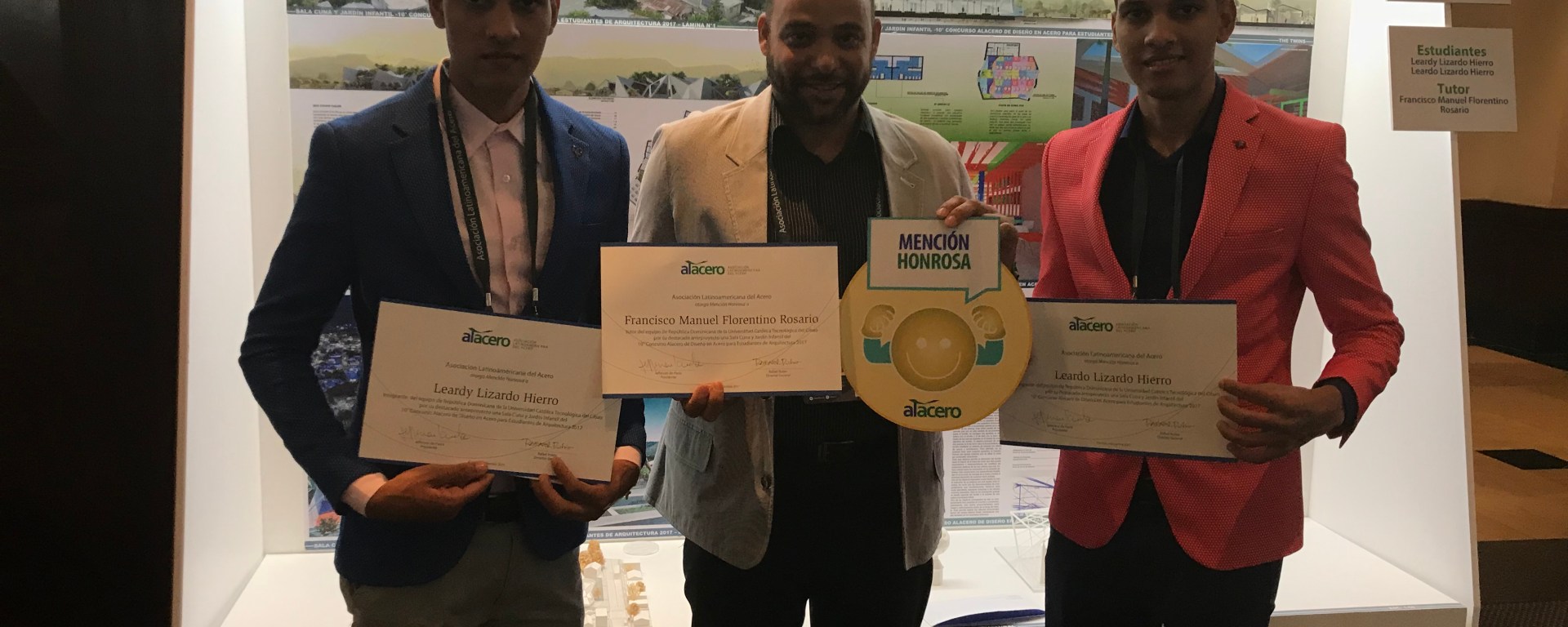 Alacero, Cancún México. El equipo de estudiantes de arquitectura “The Twins recibieron mención de honor en la entrega de la X edición del Concurso Alacero de Diseño en Acero para estudiantes de Arquitectura 2017 cuyo tema era una sala de cuna y jardín infantil.The Twins, un equipo de estudiantes de arquitectura de la Universidad Católica Tecnológica del Cibao UCATECI, resultaron ganadores del primer lugar en el sexto concurso de Diseño que realiza en el país Adoacero con el apoyo de Gerdau Metaldom y Corvi-pvc-acero que los selecciona previo al concurso internacional.