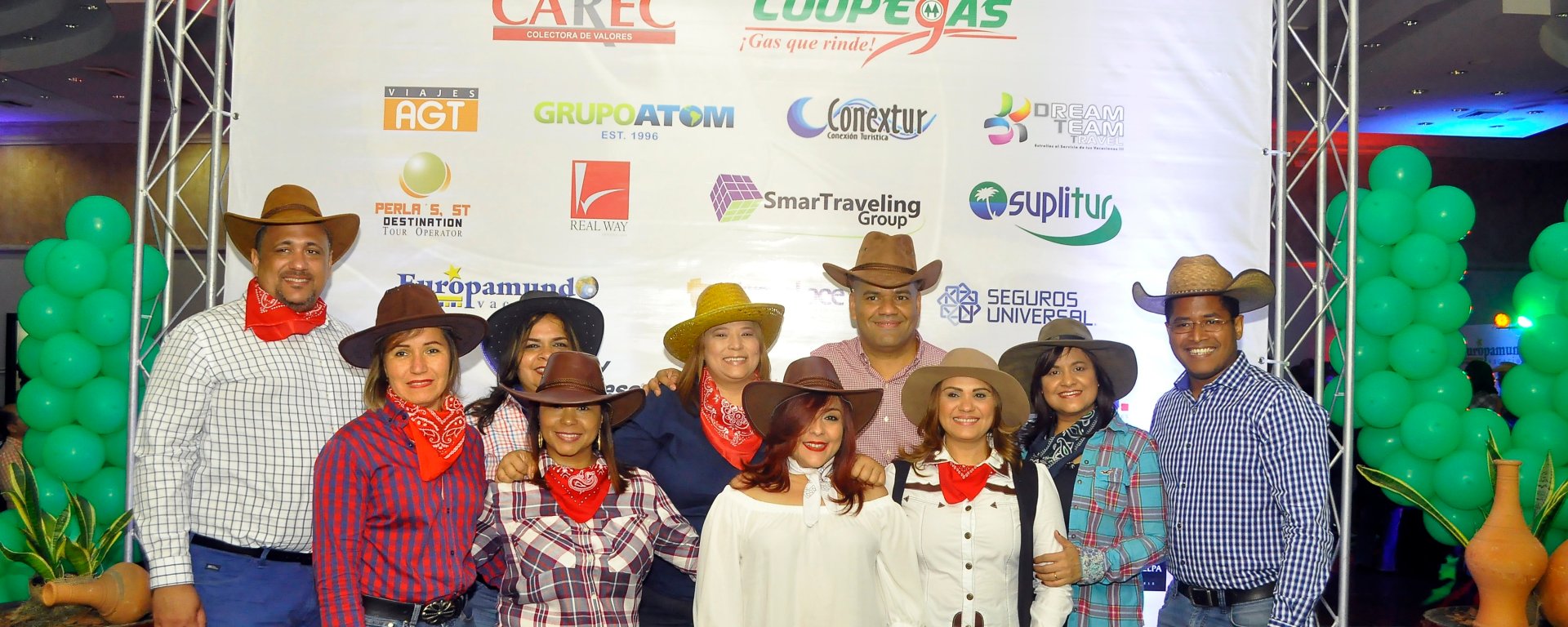 Santo Domingo.- La Asociación Dominicana de Tour Operadores (ADOTUR) celebró su fiesta de navidad al estilo vaquero, todos en pantalón jeans, camisas de cuadros, sombreros y algunos con botas desfilaron por el gran salón del Hotel Dominican Fiesta donde disfrutaron de la música del negrito de Villa Sergio Vargas y orquesta.