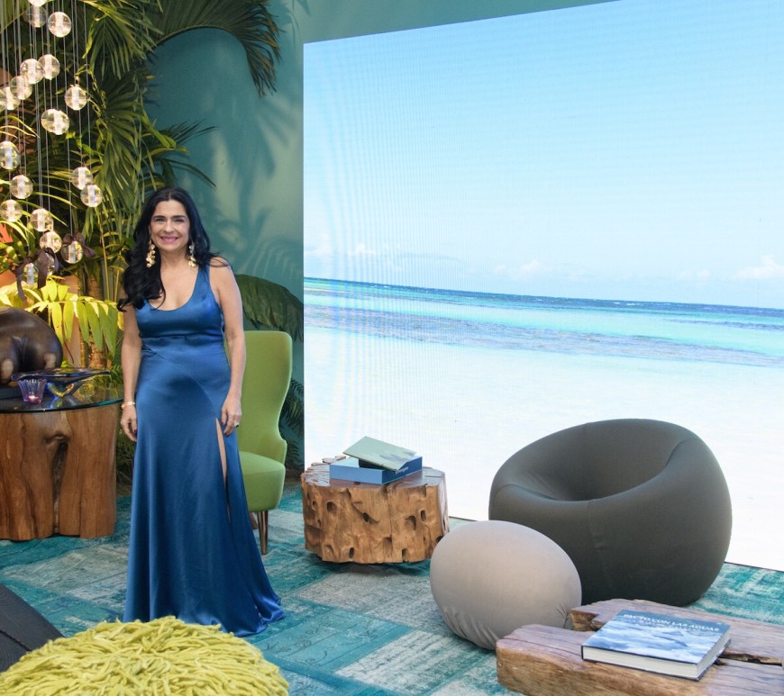 Miriam Calzada inaugura su exposición AZULES, utilizando el arte para educar sobre la madre naturaleza.