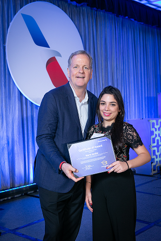 REPÚBLICA DOMINICANA- La Fundación de Educación de American Airlines, otorgó US$975,000 en becas a 360 hijos de miembros de su equipo en una ceremonia celebrada en la ciudad de Dallas. Entre los beneficiados este año se encontró la estudiante dominicana María Jacobo, hija de Laura Arenas, agente de reservaciones de American Airlines en Santo Domingo.