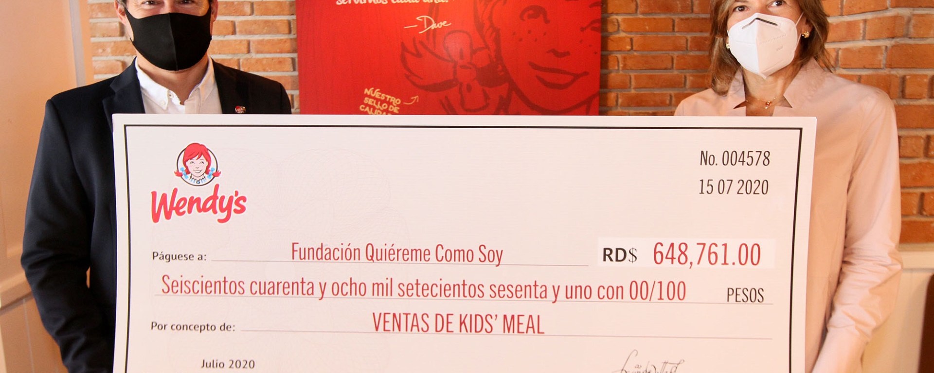 Santo Domingo, República Dominicana. – La cadena de restaurantes Wendy´s, perteneciente al Grupo Raya, concluyó la octava fase del programa de recaudación Kids’ Meal en beneficio de la fundación “Quiéreme Como Soy”.