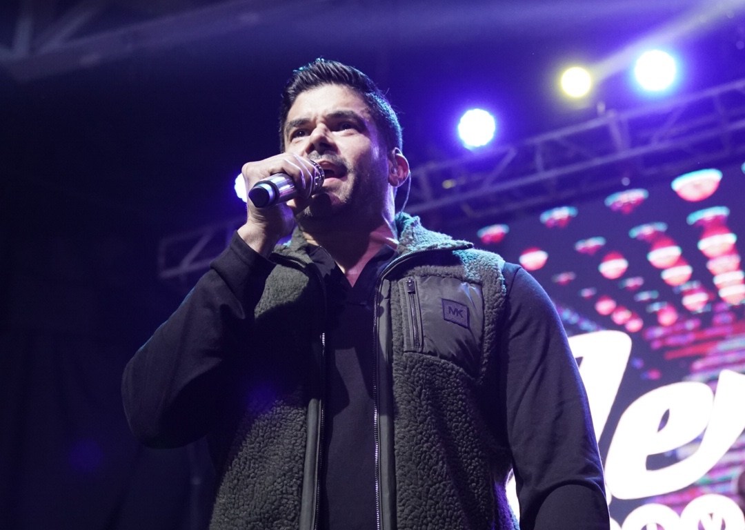 “Buenas noches, Santo Domingo, arriba, arriba, arriba… párense de sus asientos a disfrutar de reggaetón del bueno en estas navidades, como debe ser” fueron sus primeras palabras y de inmediato avisó al público que se preparara para la descarga musical de la noche.