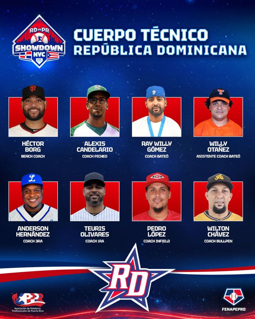 Santo Domingo.- La Federación Nacional de Peloteros Profesionales de la República Dominicana (FENAPEPRO) presentó oficialmente el roster del equipo que representará al país en el esperado evento “Showdown: RD vs PR”, que se celebrará este sábado 15 de noviembre en el Citi Field, hogar de los Mets de Nueva York.
