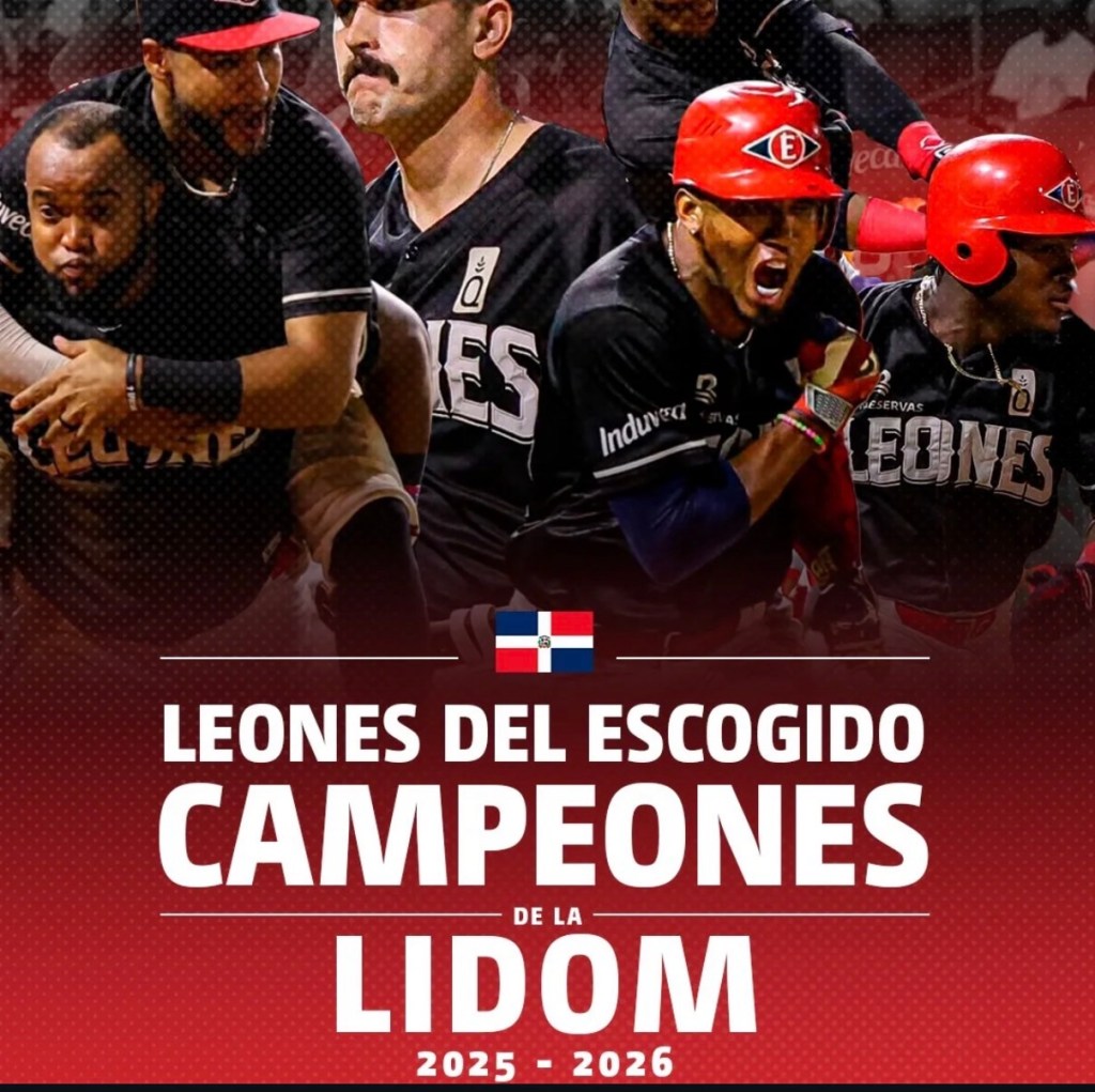 SANTO DOMINGO.- – Los Leones del Escogido escribieron anoche una nueva página dorada en la historia de la Liga de Béisbol Profesional de la República Dominicana (LIDOM) al coronarse bicampeones de la temporada 2025-2026. Con una victoria por la mínima, 1-0, sobre los Toros del Este en el Estadio Quisqueya Juan Marichal, el conjunto escarlata alzó su corona número 18.