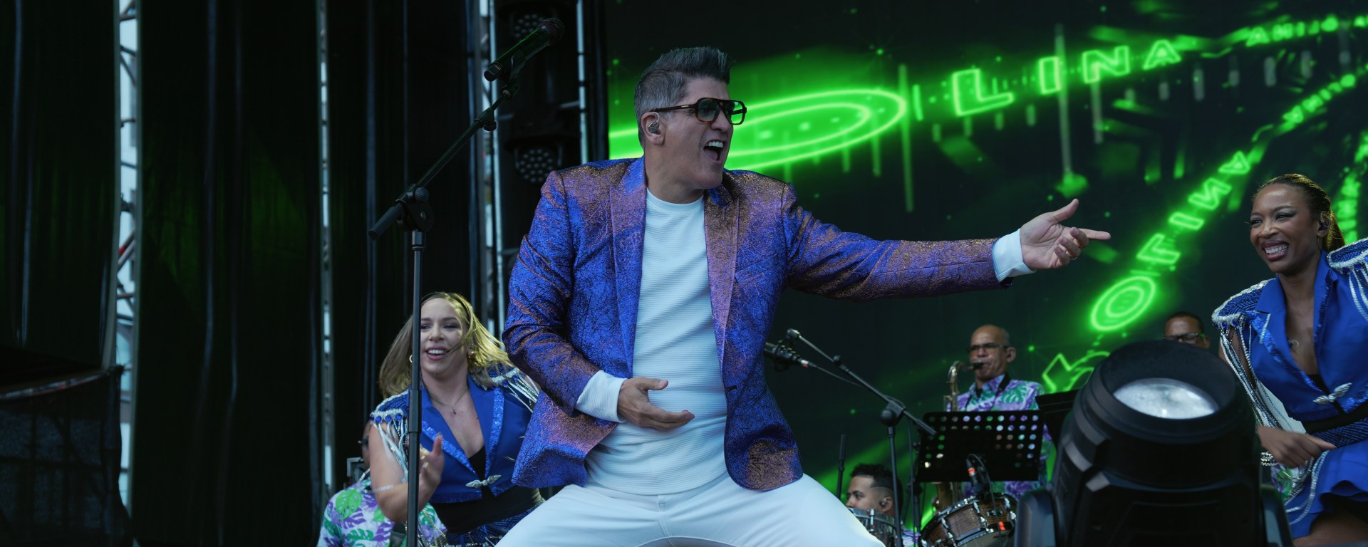 Acompañado por un cuerpo de baile liderado por el bailarín y coreógrafo Marcos VIP, “El galán del merengue” se adueñó del monstruoso escenario, poniendo al masivo público a vibrar a ritmo de merengue.