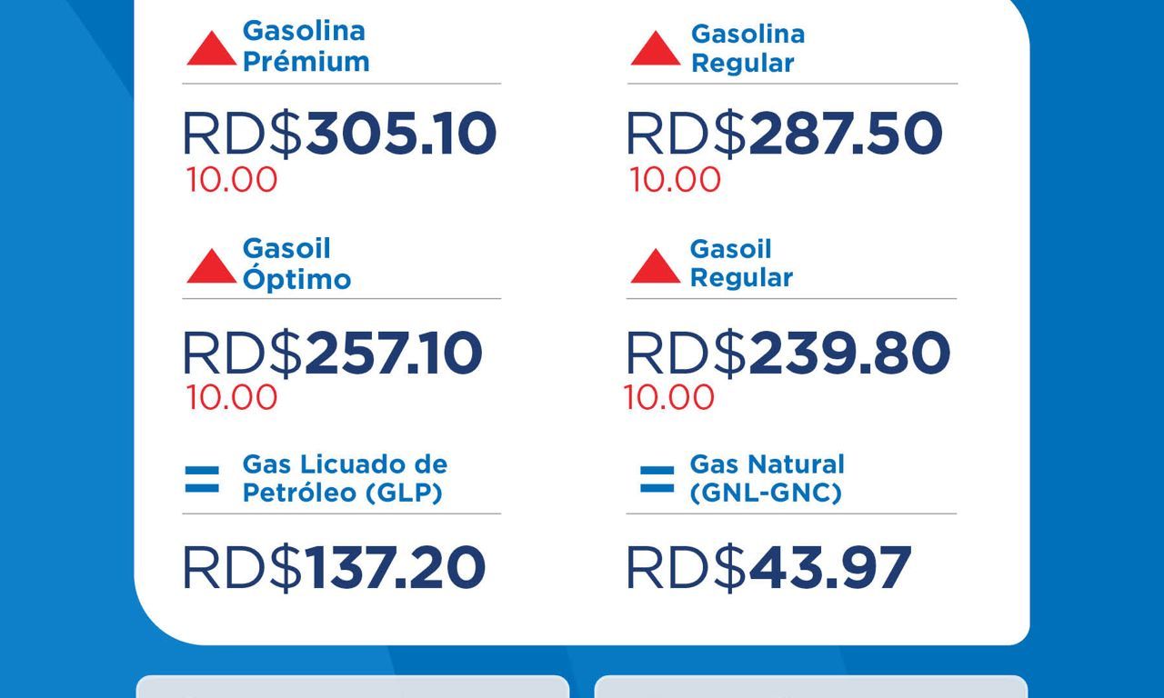 - Gasoil Regular: RD$239.80 (+)